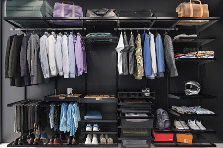 Полка для аксессуаров – элегантный элемент гардеробной системы ARISTO. Деревянная фактура полки с «бархатным» внутренним наполнением – стильное сочетание материалов для хранения ваших аксессуаров.
