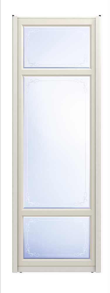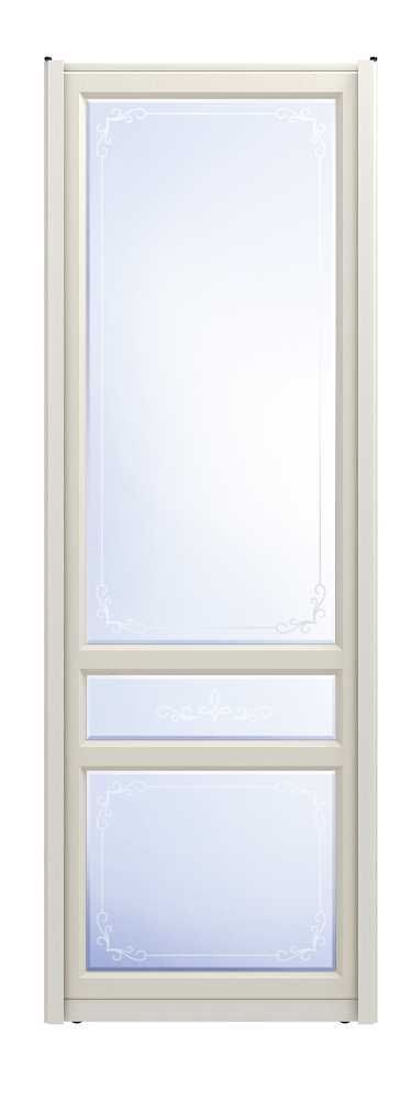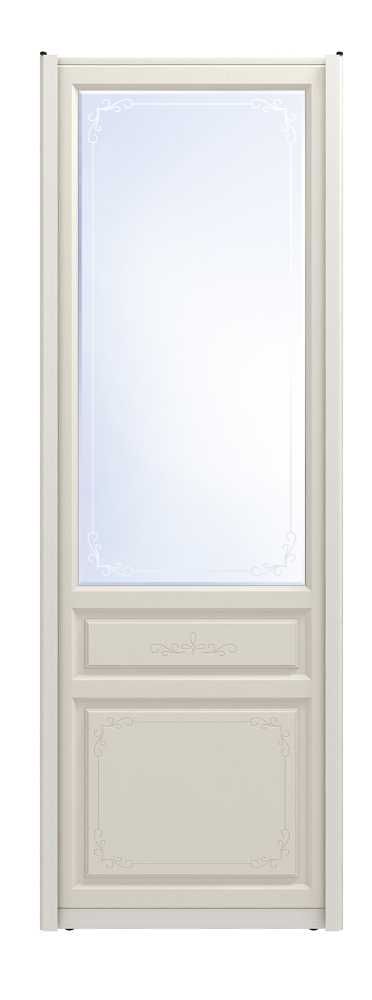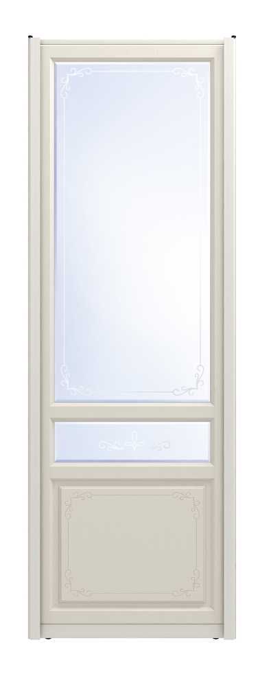 Раздвижные двери из серии «VENICE» (Венеция) отличает оригинальный витой орнамент. Уточненный рисунок располагается на полотне двери и дополняет классическую фрезеровку. Узор повторяется на зеркале, но более мягко и ненавязчиво — выполнен в технике пескоструйной обработки по амальгаме (обратной стороне зеркала) с покраской в белой цвет.